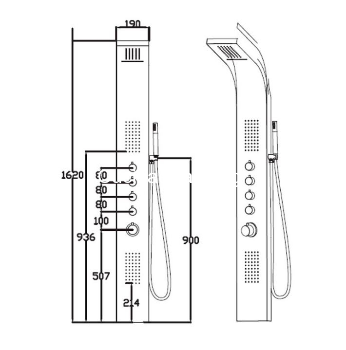 • Στήλη υδρομασάζ μαύρη ματ από αλουμίνιο, ανθεκτικό στα άλατα
