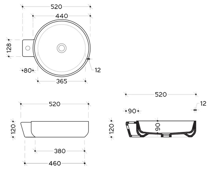 Cupa 44M Νιπτήρας Πορσελάνης Επιτραπέζιος & Επίτοιχος Φ44