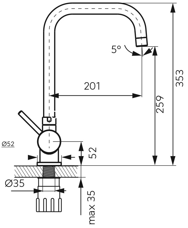 - Κατάλληλη για νεροχύτη που βρίσκεται κάτω από παράθυρο