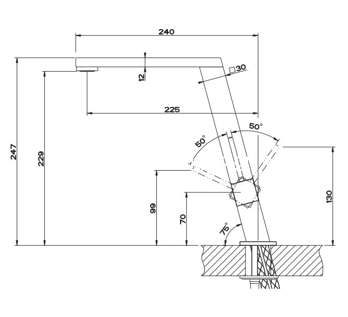 Τύπος μπαταρίας: Μίκτης μονού μοχλού με περιστρεφόμενο στόμιο.