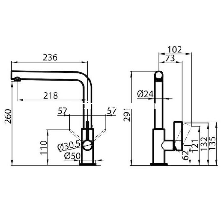 - Μπαταρία μονού μοχλού με περιστρεφόμενο και αποσπώμενο ρουξούνι