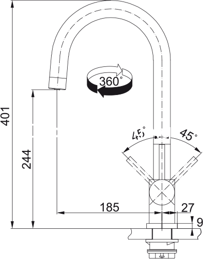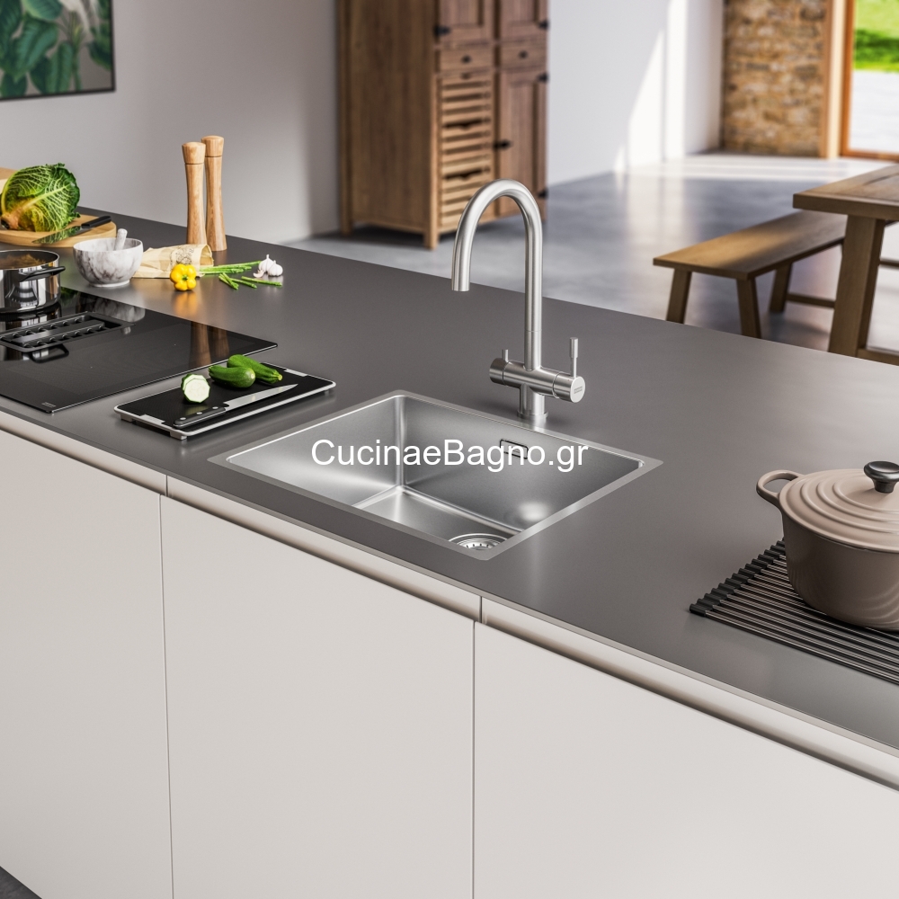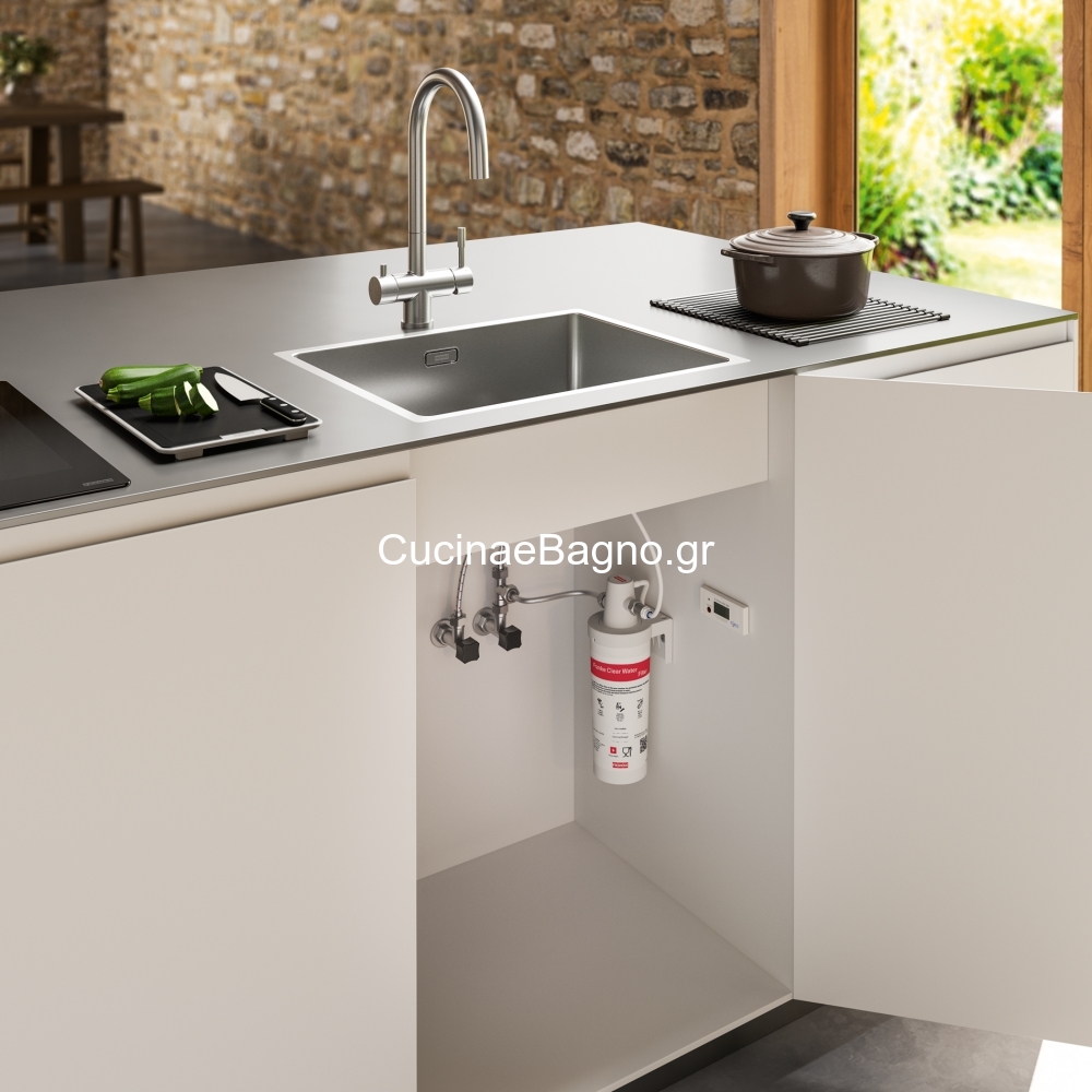 Ανάμεικτη μπαταρία κουζίνας διπλής ροής Eos Triflow, τρίοδη, φιλτραρίσματος νερού, inox, το σύστημα φιλτραρίσματος δεν περιλαμβάνεται
