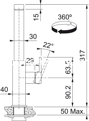 Ανοξείδωτη Αναμεικτική Μπαταρία Κουζίνας MYTHOS STANDARD, INOX, με περιστρεφόμενο ρουξούνι