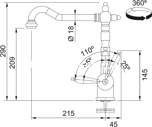 Franke Old England Χρωμέ Μπαταρία Κουζίνας 115.0060.360