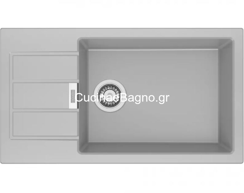 Συνθετικός νεροχύτης Sirius 2.0 611-78XL (435) 780x435mm, με 1 γούρνα, αντιστρεφόμενη ποδιά, ένθετος, urban grey, με σιφόνι και βαλβίδα, ελάχιστο μέγεθος ντουλαπιού 60cm