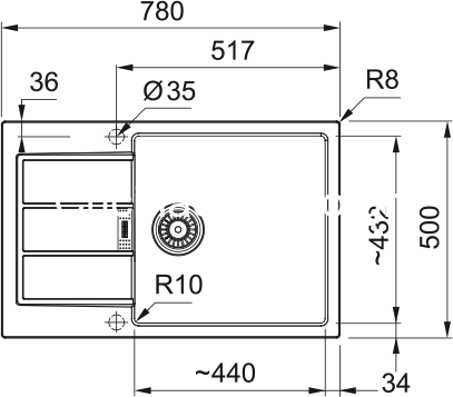 Συνθετικός νεροχύτης Sirius 2.0 611-78XL (500) 780x500mm, με 1 γούρνα, αντιστρεφόμενη ποδιά, ένθετος, urban grey, με σιφόνι και βαλβίδα, ελάχιστο μέγεθος ντουλαπιού 60cm