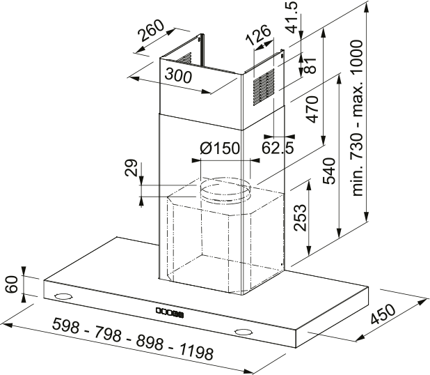 Επιτοίχια καμινάδα Tale 615 W XS, 60cm, ηλεκτρονικός χειρισμός με touch control, 3 βαθμίδες ισχύος +int, inox