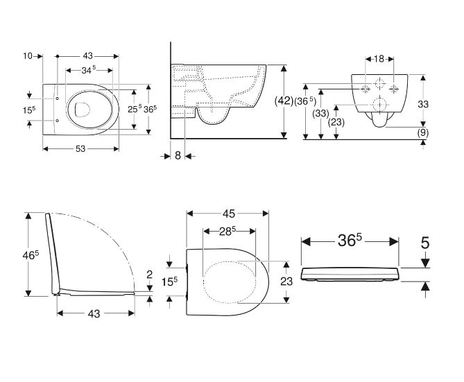 Geberit Λεκάνη Κρεμαστή Icon Rimfree 53cm Με Κάλυμμα Slim Soft Close Q/R Λευκό