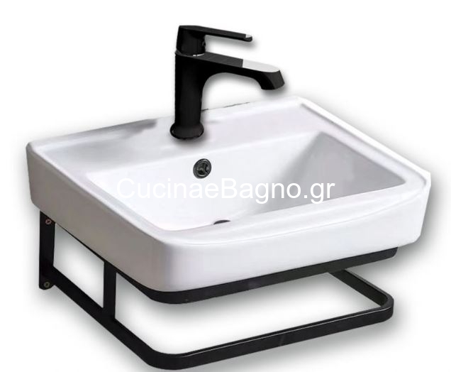 • Νιπτήρας πορσελάνη με βάση inox μαύρη.