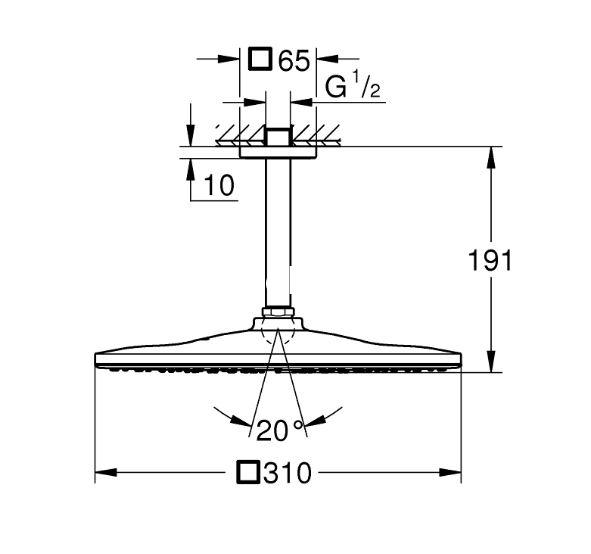 Grohe 26566000 Chrome Σετ Ντους Κεφαλής Οροφής 142MM Rainshower Mono 310 Cube