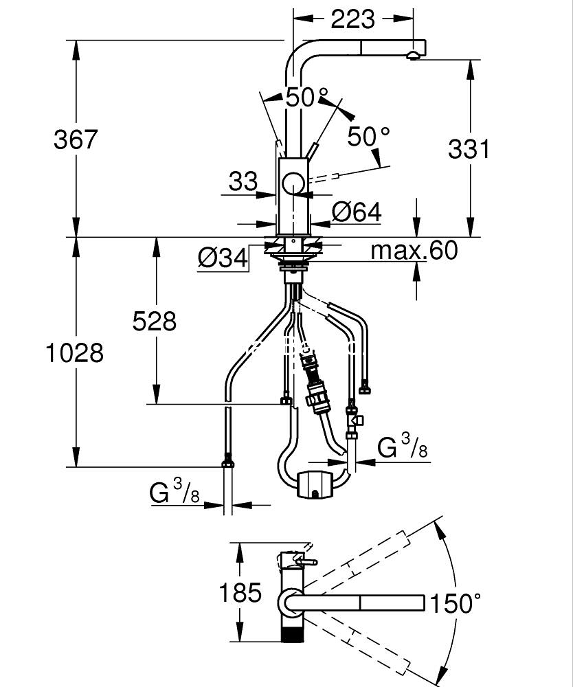 - GROHE Blue μίκτης νεροχύτη μονού μοχλού φίλτρου
