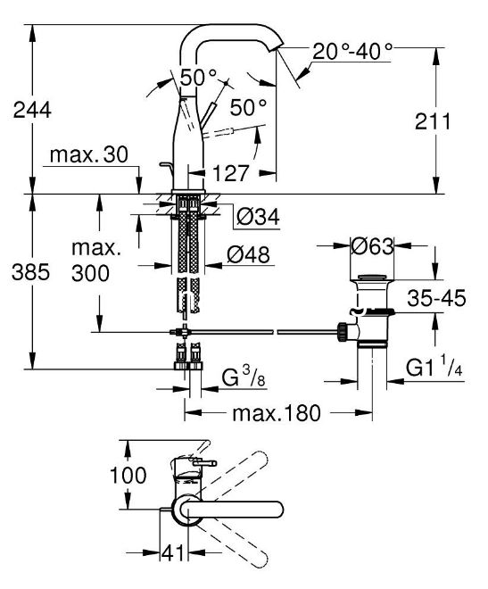 - GROHE FastFixation Plus σύστημα εγκατάστασης.