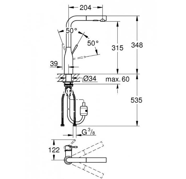Είναι ιδανική για την εκτέλεση μιας ποικιλίας εργασιών κουζίνας με ευκολία, από το γέμισμα κατσαρολών και το πλύσιμο λαχανικών μέχρι τον καθαρισμό. Επιπλέον, η επέκταση του σπρέι καλύπτει ολόκληρο το πλάτος ενός διπλού νεροχύτη. Όταν τελειώσετε, το σύστημα GROHE EasyDock εξασφαλίζει ότι το σπρέι επιστρέφει εύκολα στη θέση του.