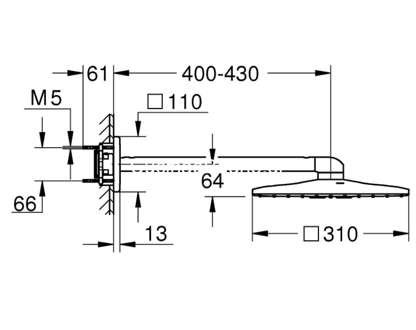 • Οριζόντιο βραχίονα ντους 430 mm
