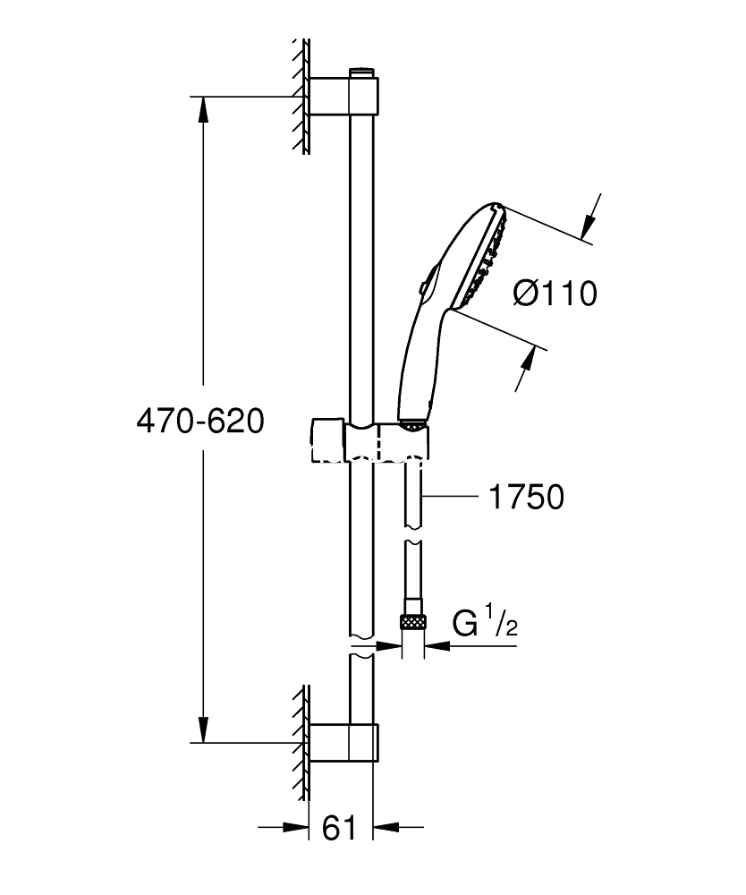 Grohe Tempesta 110 261622433 Black Matt 60cm Βέργα Ντους Με Σπιράλ & Ντους Χειρός