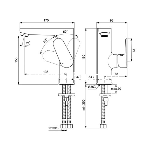 Ideal Standard Cerafine O Nuovo Μπαταρία Νιπτήρα BC555AA