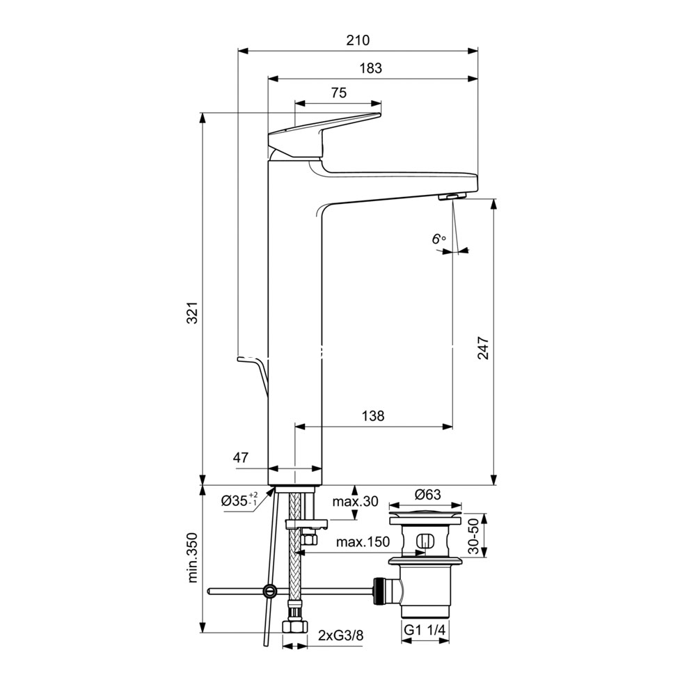 CERAPLAN - Μπαταρία νιπτήρα 47x210x321 mm, 138 mm Προβολή ρουξουνιού με matt black φινίρισμα, 5 l/min (3 bar), με βαλβίδα αυτόματη- EasyFix, Τεχνολογία Click, Ecoflow, FirmaFlow, Πιστοποίηση NF