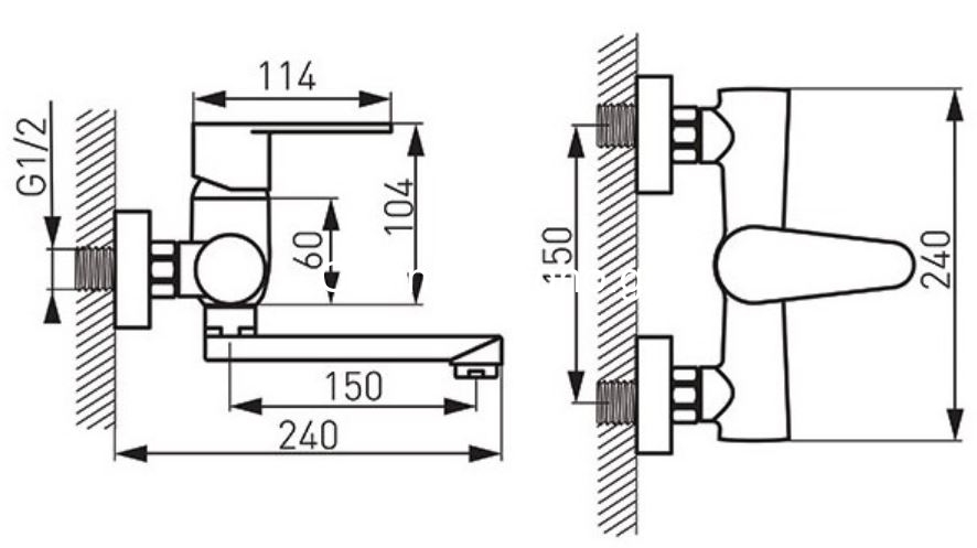 • G½ απόσταση έκκεντρης σύνδεσης 150 ± 20mm