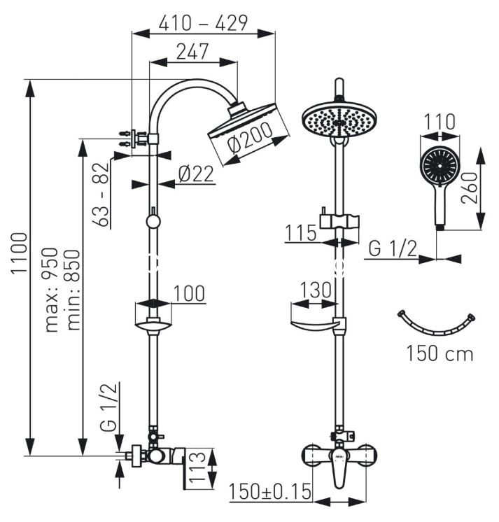 • Τηλέφωνο τριών λειτουργιών με βάση στήριξης (βροχή, μασάζ, μικτή)