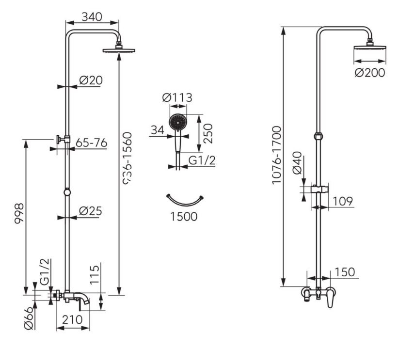 • ρυθμιζόμενη μεταλλική ράβδος 107,6 - 170cm