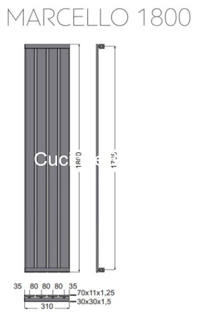 Karag Marcello 1800 Nero 31x180 Μαύρο Θερμαντικό Σώμα Μπάνιου
