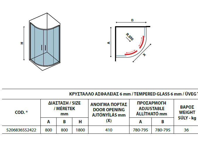 • Ακτίνα: 550