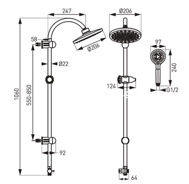 • Σπιράλ 70cm με παξιμάδι ½ για σύνδεση γενικής χρήσης σε κάθε μπαταρία ντους