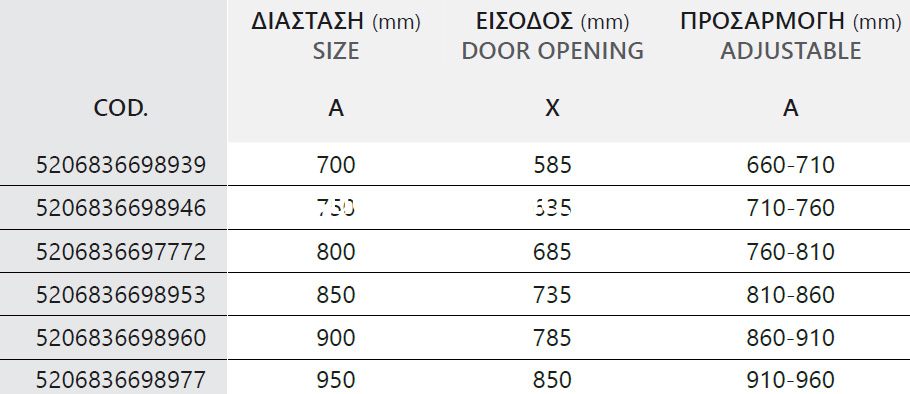 Karag S-28 ALTO PORTA 80x200 Πόρτα Καμπίνας Διάφανη Προφίλ Χρωμέ
