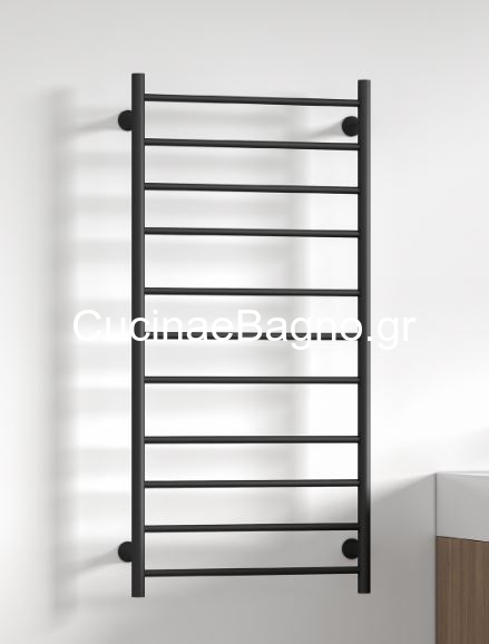Θερμαντικό σώμα μπάνιου TRUMPET, κατασκευασμένο από ανοξείδωτο ατσάλι και φέρει φινίρισμα μαύρου ματ. Είναι μια στιβαρή κατασκευή για το μπάνιο, με υλικά πρώτης διαλογής για την ορθή και μακρά λειτουργία.