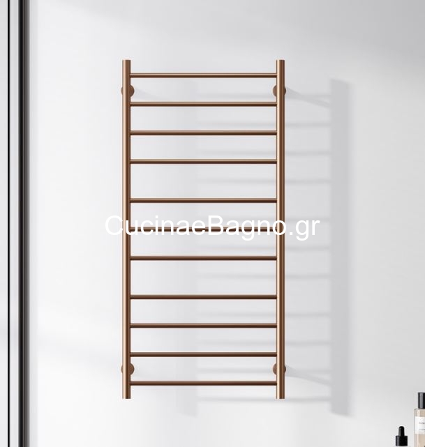 Θερμαντικό σώμα μπάνιου TRUMPET, κατασκευασμένο από ανοξείδωτο ατσάλι και φέρει φινίρισμα ροζ χρυσού. Είναι μια στιβαρή κατασκευή για το μπάνιο, με υλικά πρώτης διαλογής για την ορθή και μακρά λειτουργία.