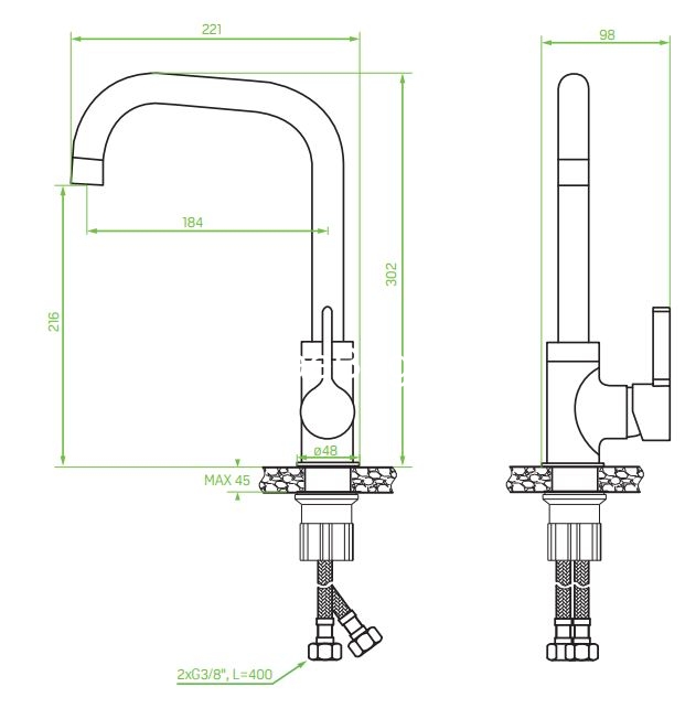 Η σειρά LENA είναι κλασικές βρύσες κουζίνας με στόμιο σε σχήμα L. Χαρακτηρίζονται από μια πεπλατυσμένη λαβή που είναι εύκολο να λειτουργήσει ακόμα και με βρεγμένα χέρια, γεγονός που αυξάνει την άνεση χρήσης. Το επιχρωμιωμένο άκρο του στομίου σπάει το μονόχρωμο σώμα, προσθέτοντας ελαφρότητα στη βρύση. Ο τόνος, που είναι κοντά στα πιο δημοφιλή φινιρίσματα νεροχύτη από γρανίτη, καθιστά δυνατή τη σύνθεση ενός ολοκληρωμένου σετ. Η βρύση διατίθεται και σε έκδοση χρωμίου.