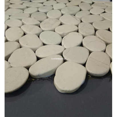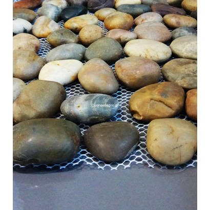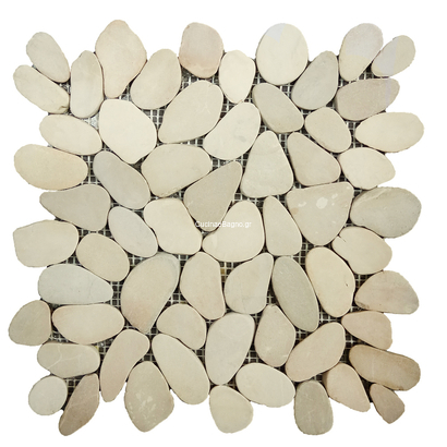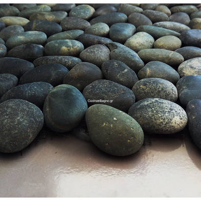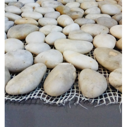Φυσικά βότσαλα τοποθετημένα σε δίχτυ. Διακοσμήστε το μπάνιο, την κουζίνα, την αυλή σας ακόμα και χώρους εστίασης. Συνδυάστε τα με στόκο, για τους ενδιάμεσους αρμούς, σε φυσικές αποχρώσεις.