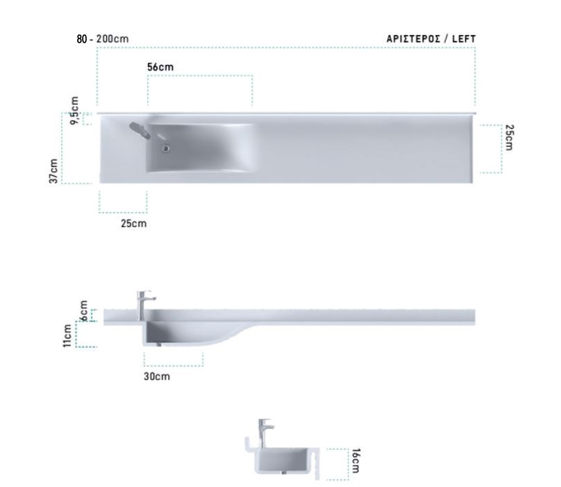 • Η κοπή του νιπτήρα-πάγκου γίνεται ακριβώς στα επιθυμητά μέτρα του χώρου. Παρακαλώ επικοινωνήστε με το κατάστημα.