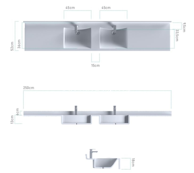 • Η κοπή του νιπτήρα-πάγκου γίνεται ακριβώς στα επιθυμητά μέτρα του χώρου. Παρακαλώ επικοινωνήστε με το κατάστημα.