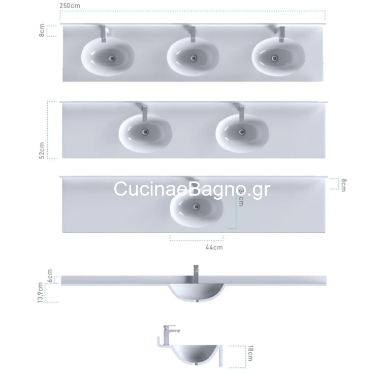 • Η κοπή του νιπτήρα-πάγκου γίνεται ακριβώς στα επιθυμητά μέτρα του χώρου. Παρακαλώ επικοινωνήστε με το κατάστημα.