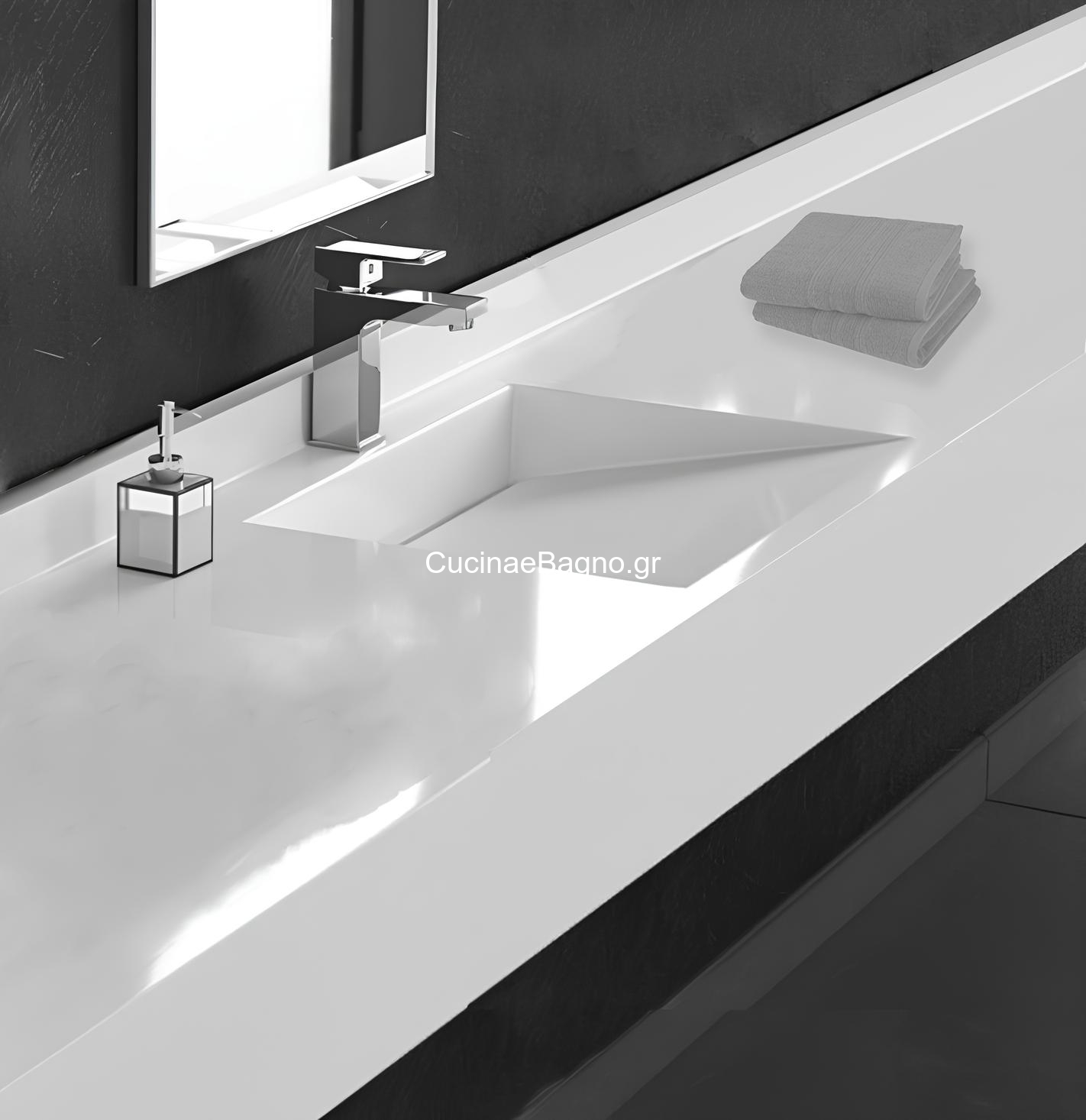 • Η κοπή του νιπτήρα-πάγκου γίνεται ακριβώς στα επιθυμητά μέτρα του χώρου. Παρακαλώ επικοινωνήστε με το κατάστημα.