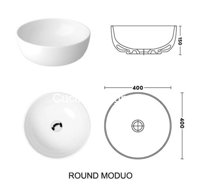 • Νιπτήρας MODUO ROUND πορσελάνη λευκή. Διάσταση (Μ x Π x Υ): Ø 40 x 15 cm