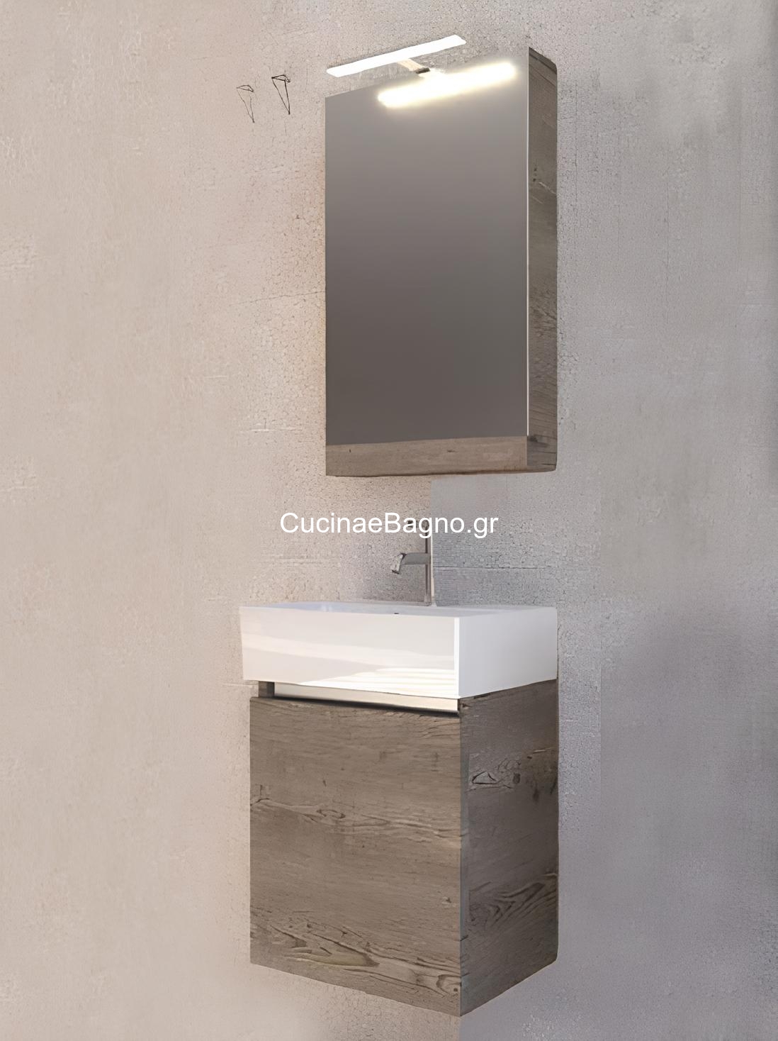 Πάγκος κρεμαστός με ένα πορτάκι soft close (αργό κλείσιμο), από M.D.F με επένδυση laminate. Διάσταση (ΜxΠxΥ): 50x38x55 cm.
