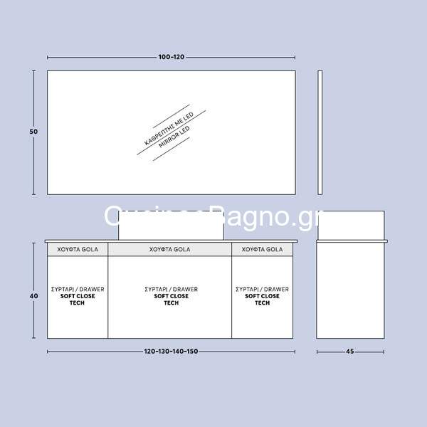 - Βάση Νιπτήρος 11.080. Διάσταση (Μ x Π x Υ): 80x45x55 cm