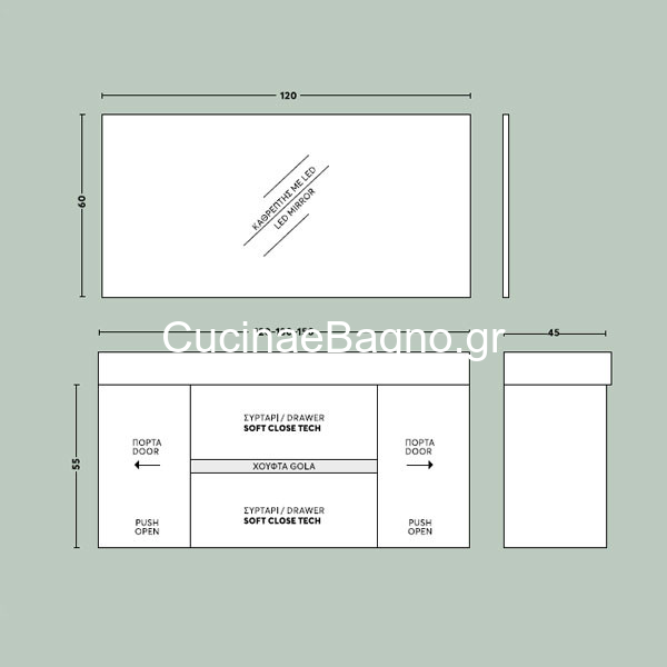 - Καθρέπτης LED. Διάσταση: 120x60 cm.