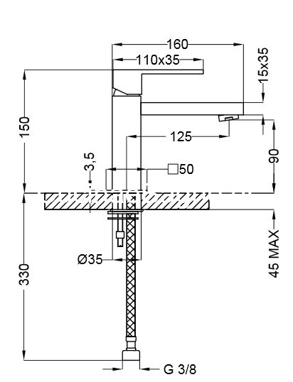 • Μπαταρία νιπτήρα χαμηλή χρωμέ