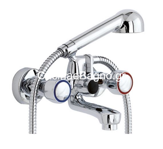 Μπαταρία λουτρού χρωμέ με στήριγμα, ντους χειρός και σπιράλ